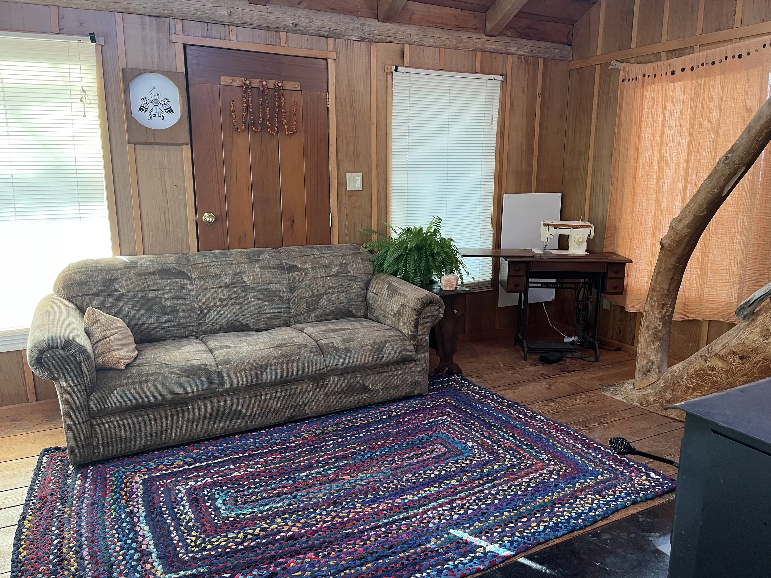 Enjoy an open living space downstairs with lots of natural light and a functioning woodstove. Firewood is provided along with electric heat.