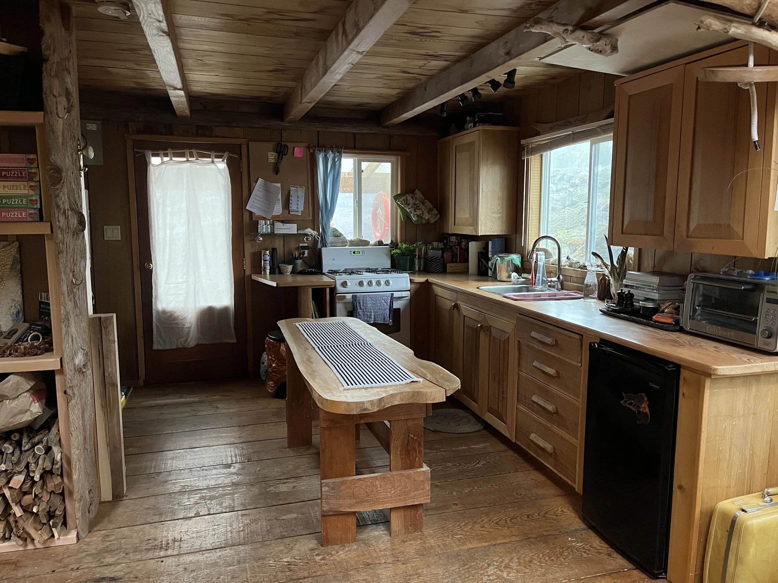 Enjoy a fully-furnished kitchen with propane on-demand hot water and a propane stove! Watch the tide shift in the harbour as you wash dishes.